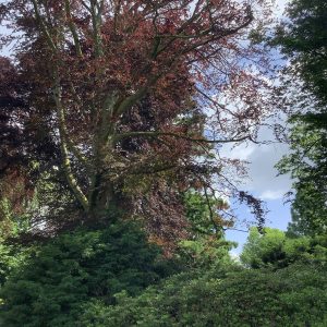 Leider ist diese Blutbuche wegen der Trockenjahre massiv geschwächt und somit von Pilzen befallenen. Die Standsicherheit ist gefährdet