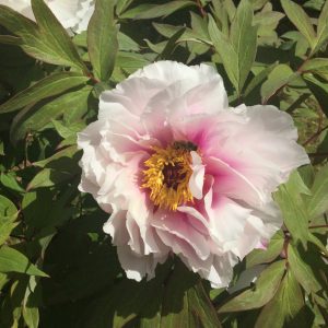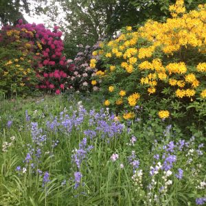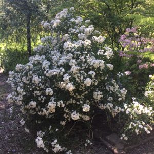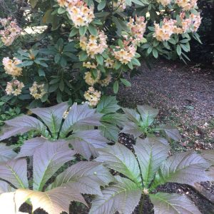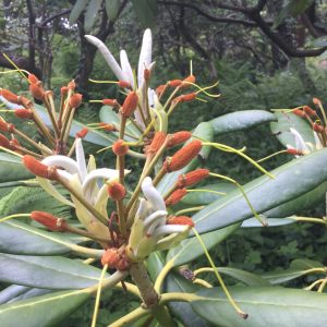 Da haben wir den Moment verpasst die Blüten auszuknipsen und schon erscheinen die Früchte in Kupfer und die pelzigen Triebe in zartem Weiß . Damit die Rhodos auch im nächsten Jahr über und über blühen, müssen wir rasch noch nach arbeiten. Da wir hier tausende Blütenstände haben, ist jede helfende Hand willkommen.