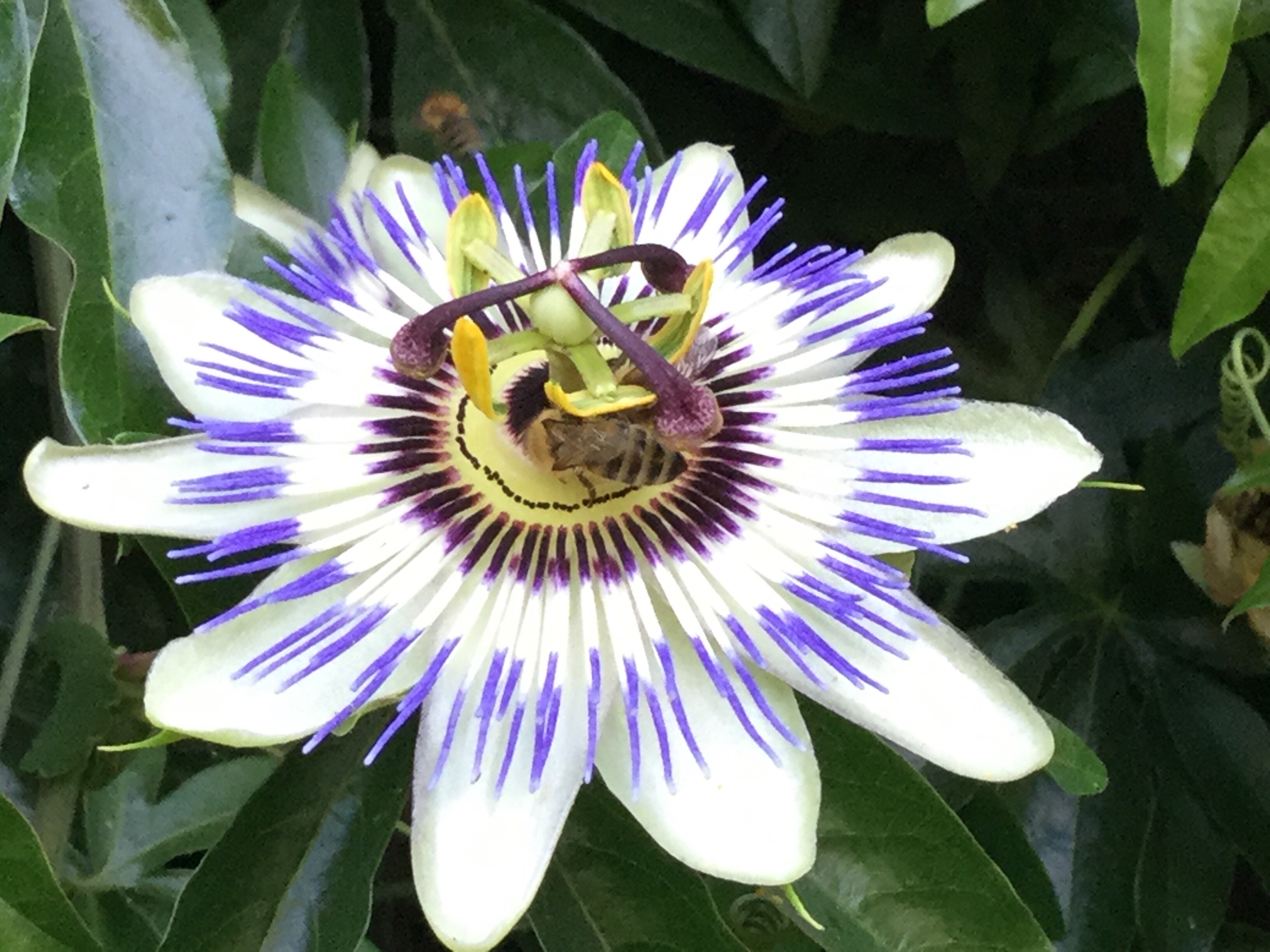 Die Lindenblüte ist vorbei und die Bienen sind auf Futtersuche. Heute sehe ich sie zum ersten Mal bei den Passionblumenblüten, die sie bisher völlig links liegen gelassen haben.