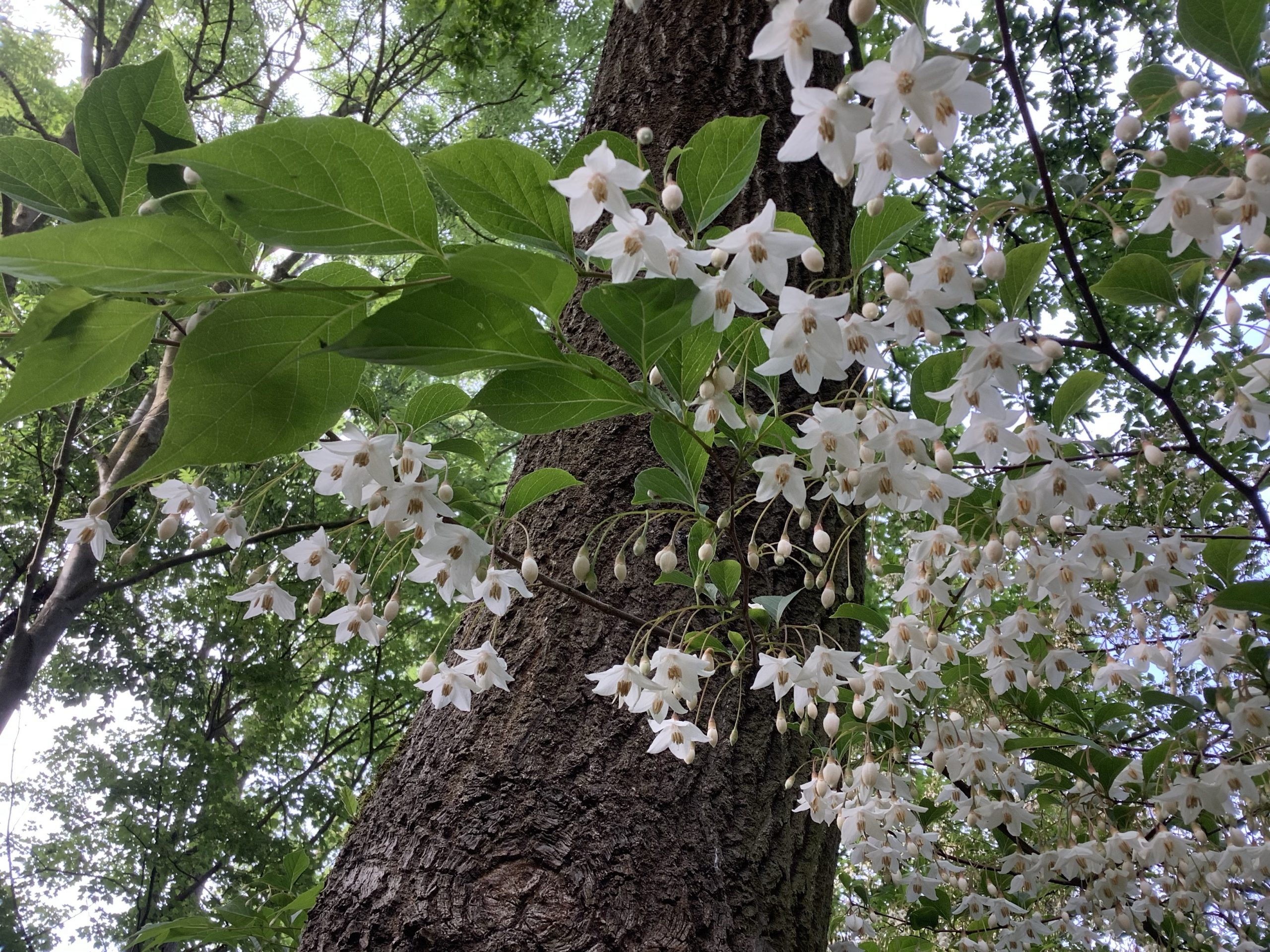 Schon seit einiger Zeit laufe ich jeden Tag und schaue, ob die vielen, vielen Knospen schon geöffnet sind. Jetzt ist es soweit, unsere Styrax japonica blüht. Die zarten hängenden Glöckchen fangen an sich zu öffnen und duften auch wunderbar. Nur der Blick von unten gegen den Himmel gibt den Blick in die Blüten frei.