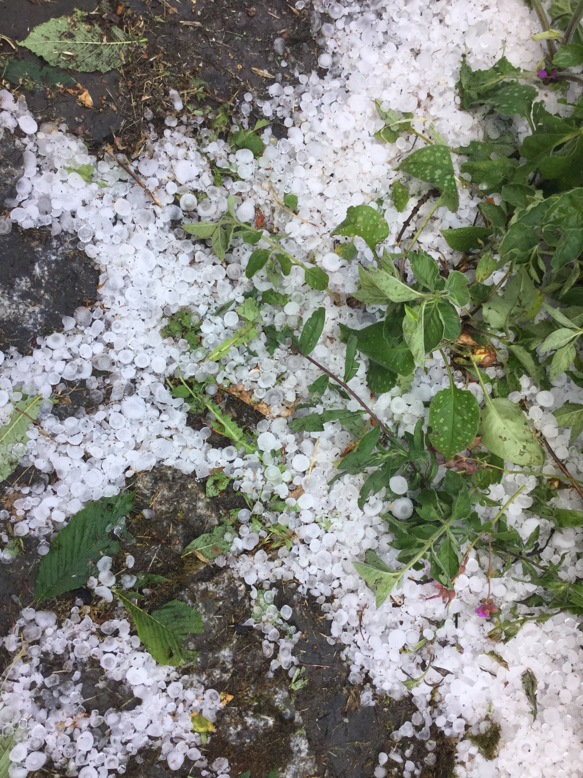 Nun ist die Pracht vorbei….ein heftiger Hagelsturm hat die Blüten und Blätter niedergeholt und alles , und auch noch die Hagelkörner, liegen wüst herum. Das schmerzt natürlich das Gärtnerherz. Leben wir doch jedes Jahr neu vor allen für den Moment der “ vollen Blüte „.