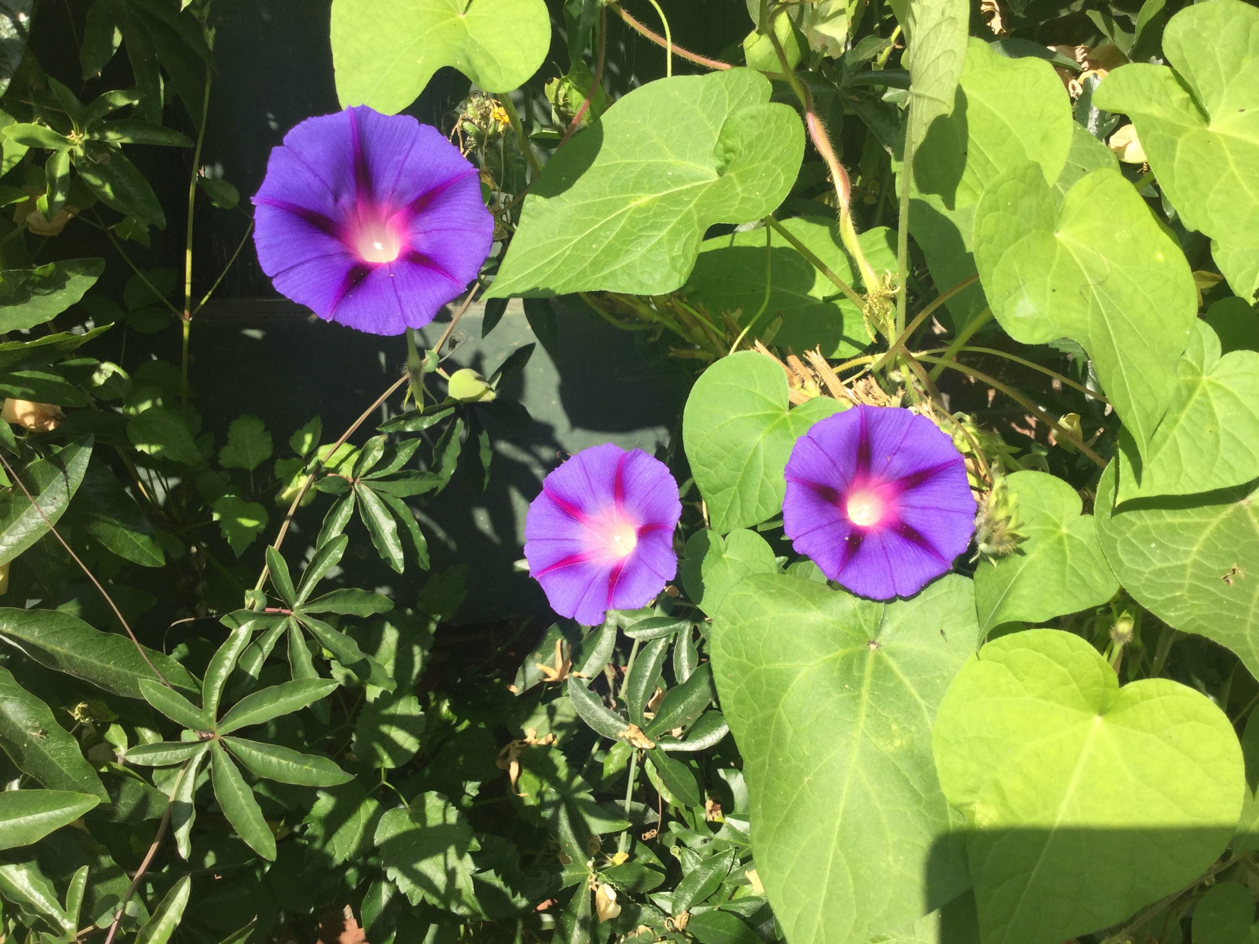 Die blaue Trichterwinde sät sich an meiner Hauswand seit ein paar Jahren selbst aus.