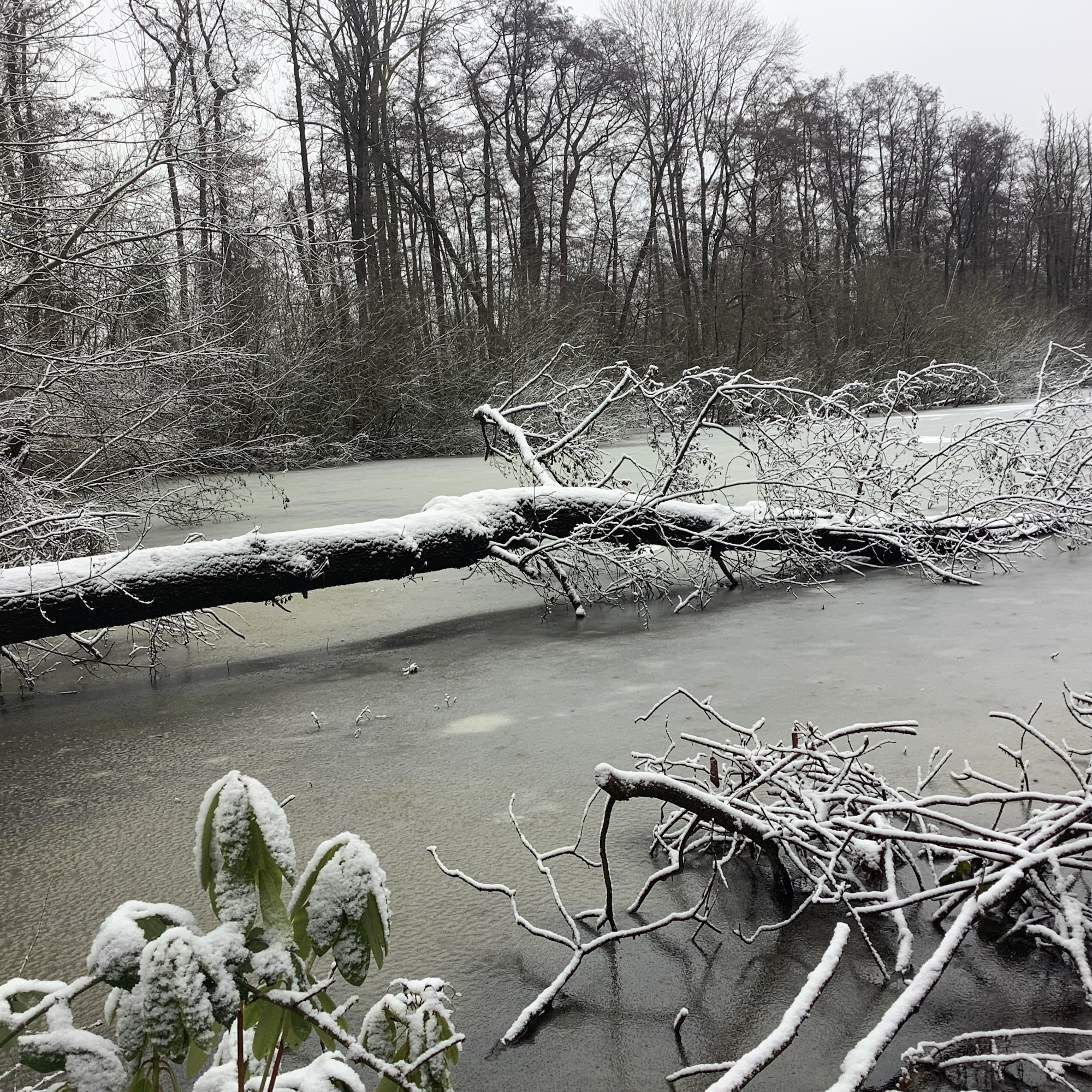 Eis und Schnee und eine besonders ruhige Stimmung verzaubern Park und See.